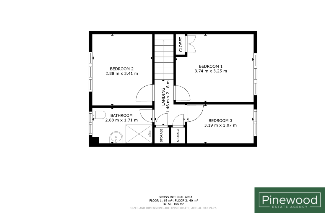 Bedroom 2: 2.88m x 3.41m