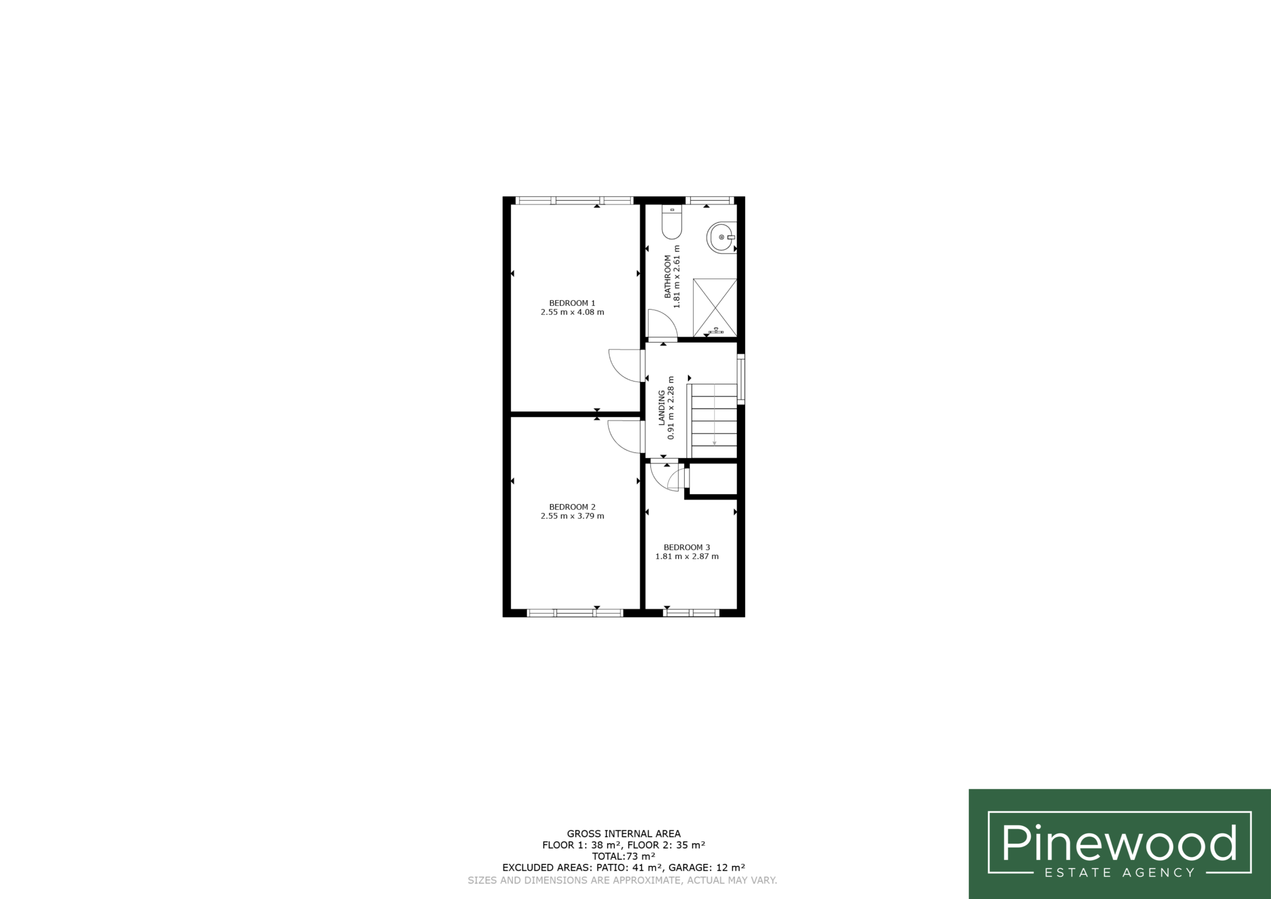Bedroom 2: 2.55m x 3.79m