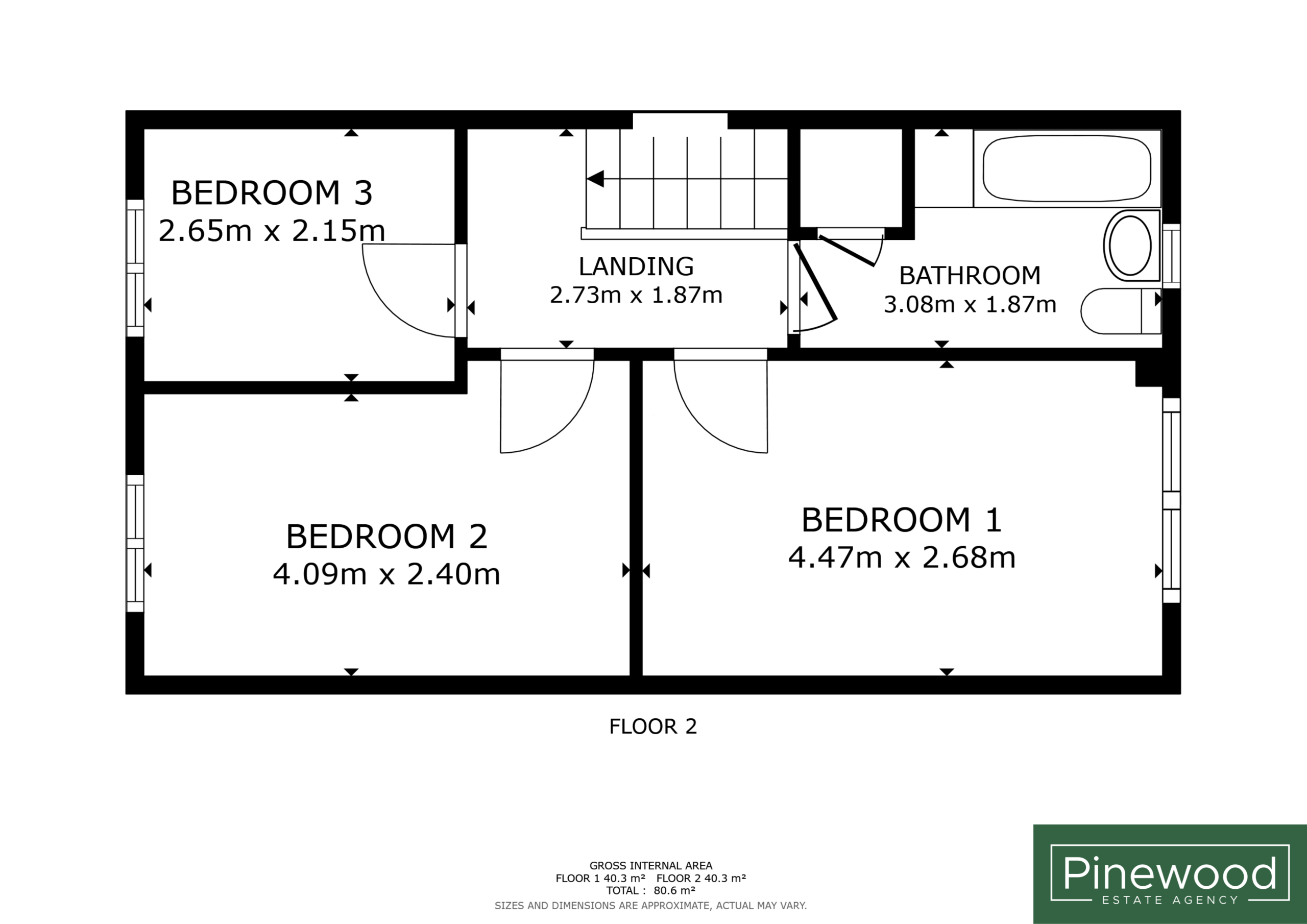 Bedroom 3: 2.65m x 2.15m