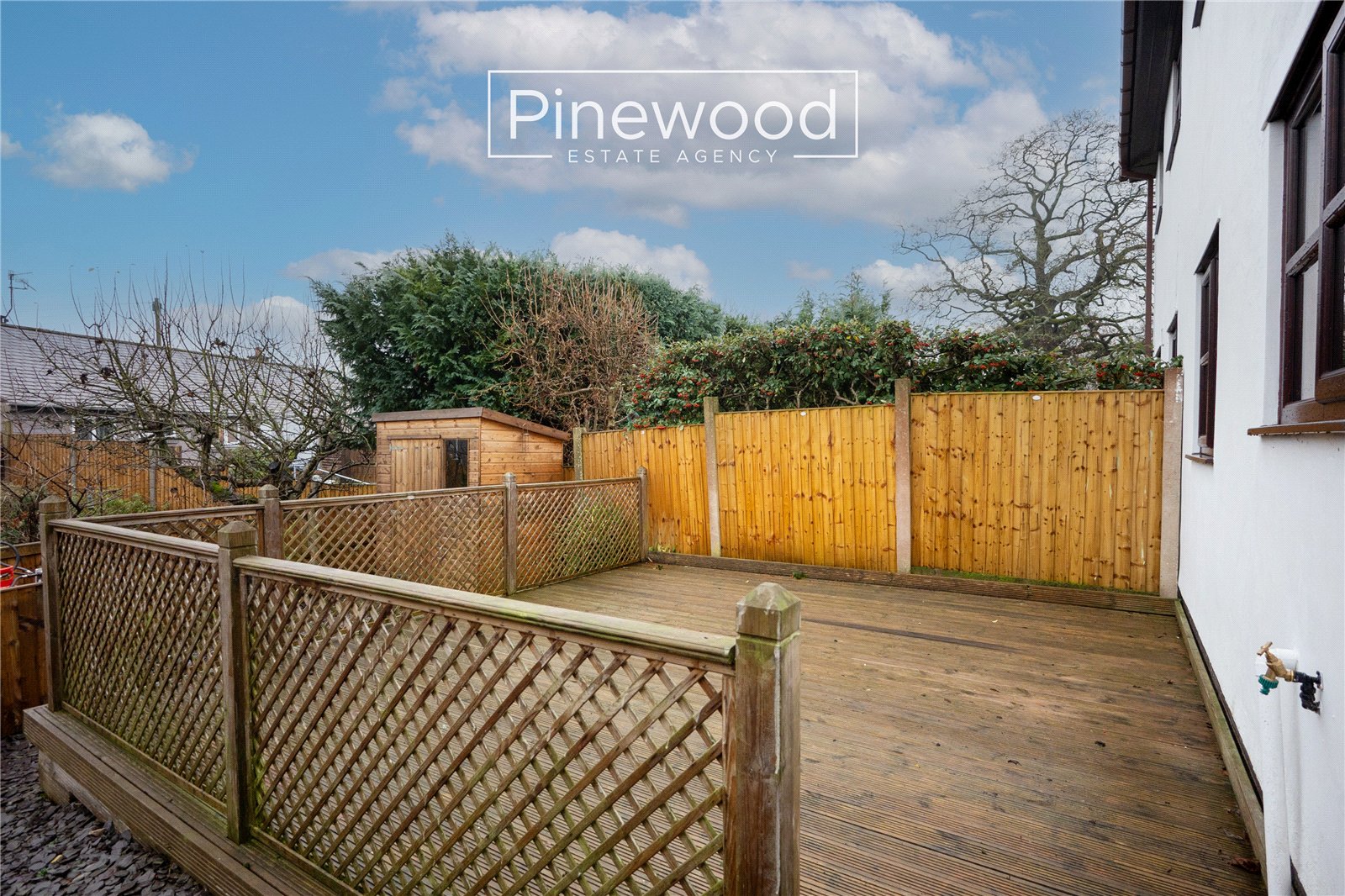 The property benefits from a front garden and a private rear garden, which includes a raised decking area—perfect for outdoor furniture and entertaining. The rear garden can be accessed via the driveway or directly from the kitchen.