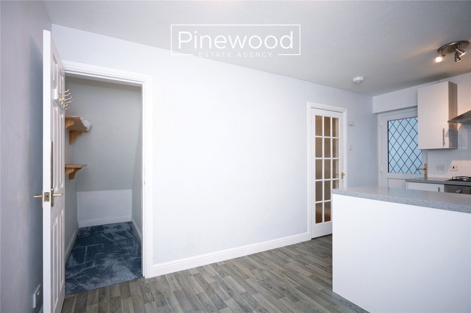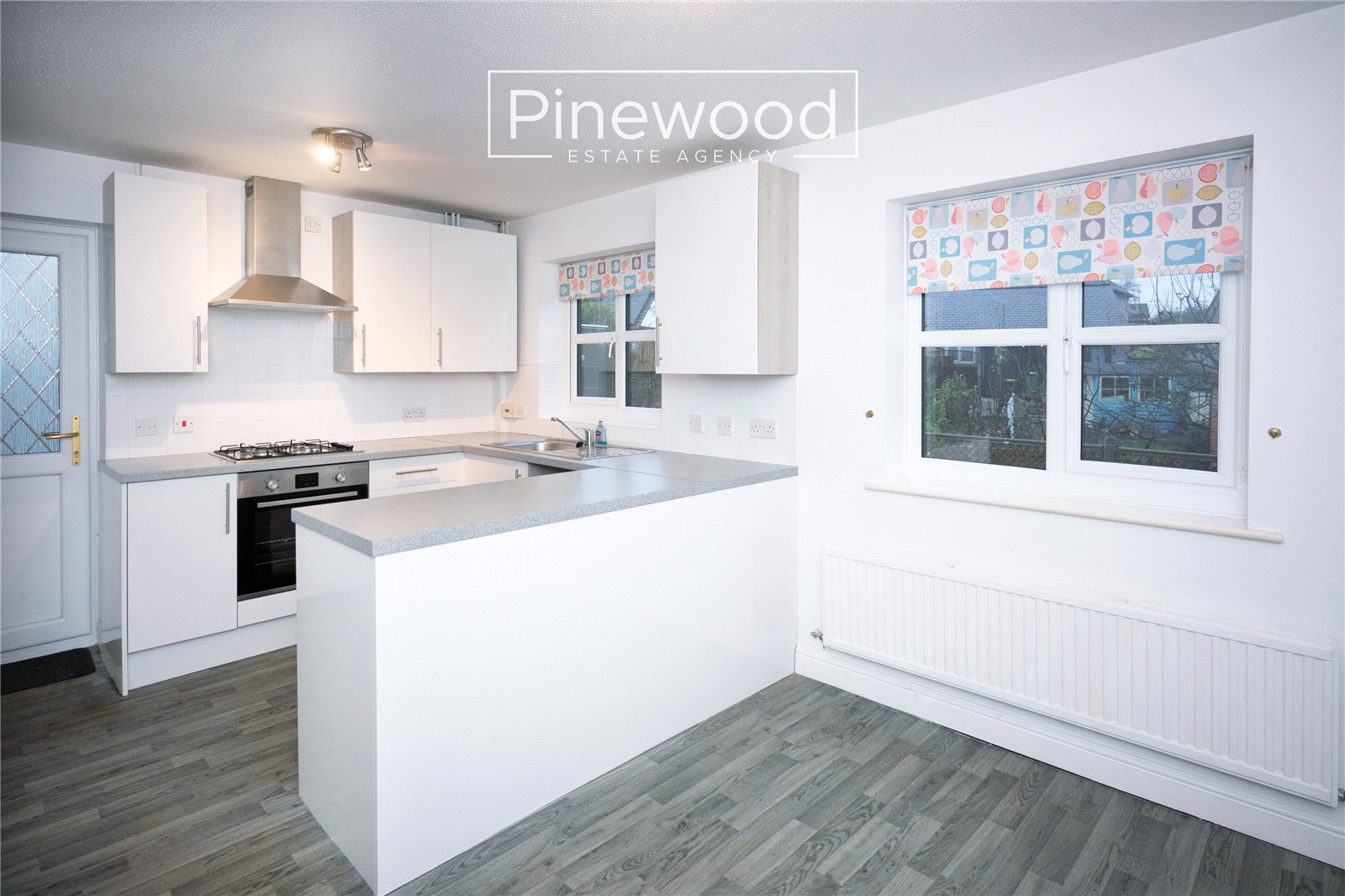 The property is entered via a porch, providing useful space for coats and shoes. The ground floor comprises a spacious lounge featuring a large bay window and an electric fireplace. To the rear is a modern kitchen/diner with white units and grey worktops. Integrated appliances include a gas hob with overhead extractor fan and oven, with additional space available for further white goods. The dining area comfortably accommodates a family dining table.