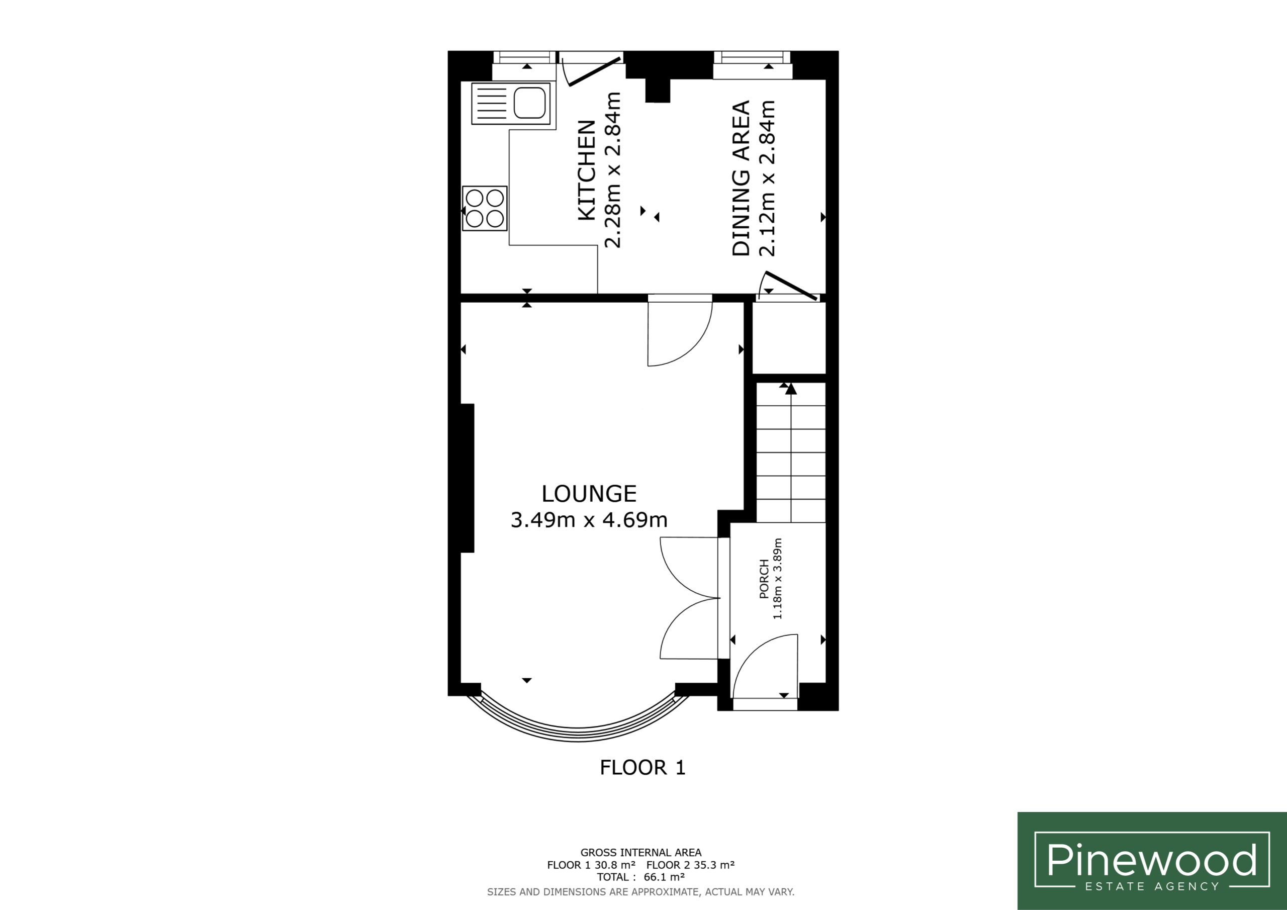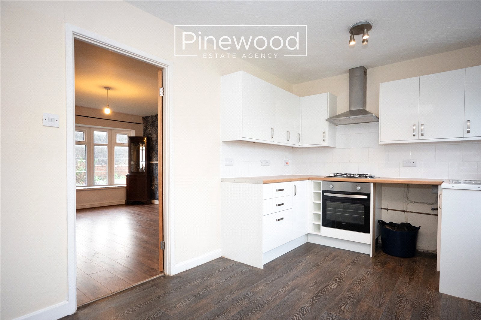 Upon entering the property, you are welcomed into a small hallway providing access to the staircase and the lounge. The lounge features a large bay window, allowing plenty of natural light to flow through the ground floor. To the rear is a spacious open-plan kitchen and dining area, which would benefit from some updating. The kitchen includes integrated appliances such as a gas hob, oven, and extractor fan, with additional space for a fridge/freezer and plumbing for a washing machine. The dining area comfortably accommodates a dining table and provides access to the rear garden via the back door.