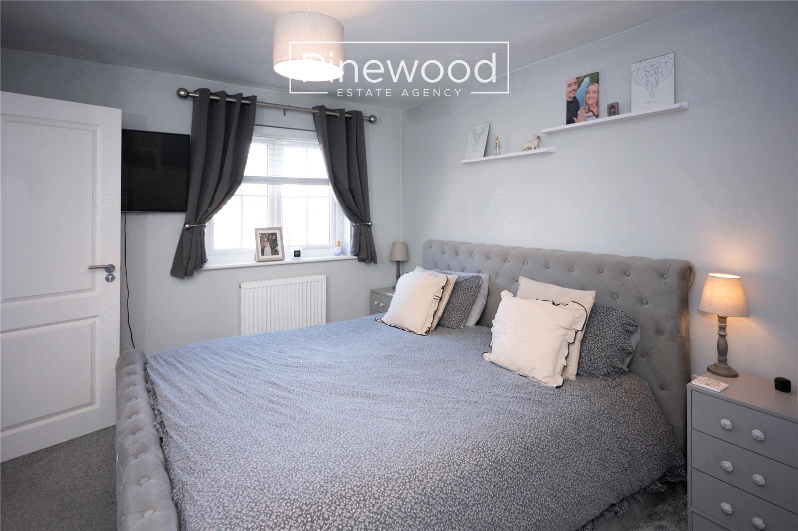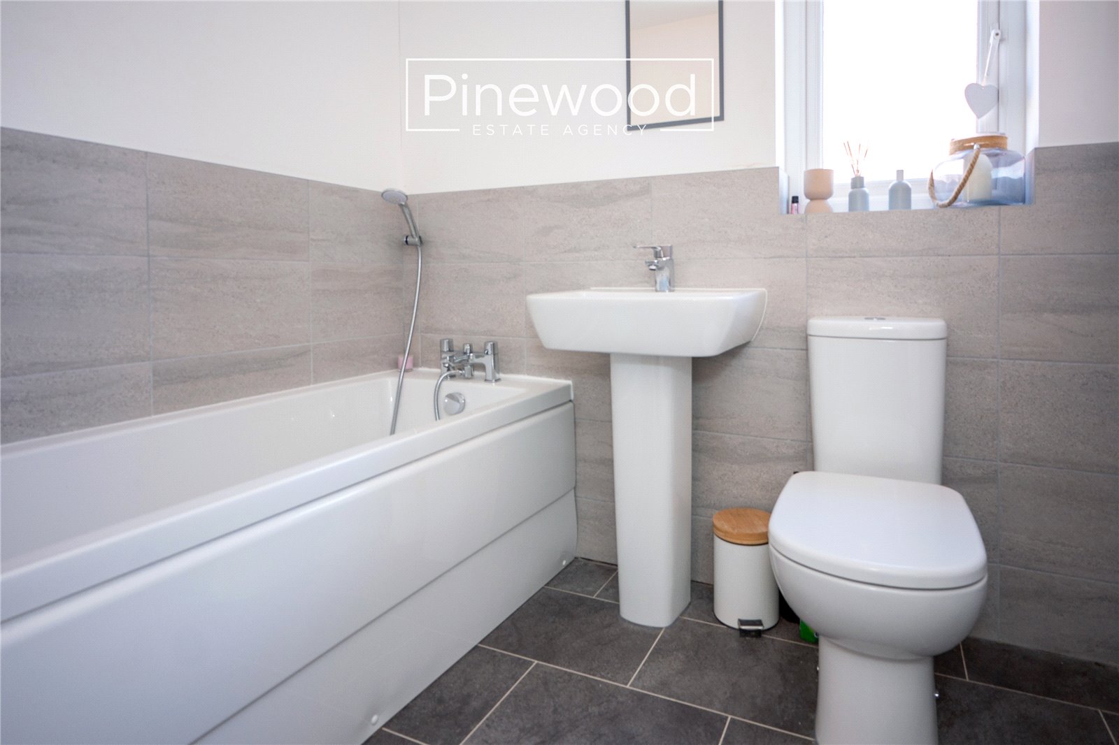 The first floor comprises three bedrooms and the family bathroom. The master bedroom enjoys plenty of natural light from a front-facing window and benefits from its own en-suite shower room. The ensuite consists of WC, hand basin, and enclosed shower cubicle. The second double bedroom is generously sized and overlooks the rear garden, while the third bedroom provides an ideal setting for a single bedroom, office or dressing room. Completing the floor is the family bathroom, fitted with a bath and detachable shower head, hand basin, and WC.
