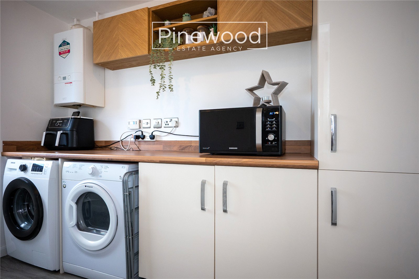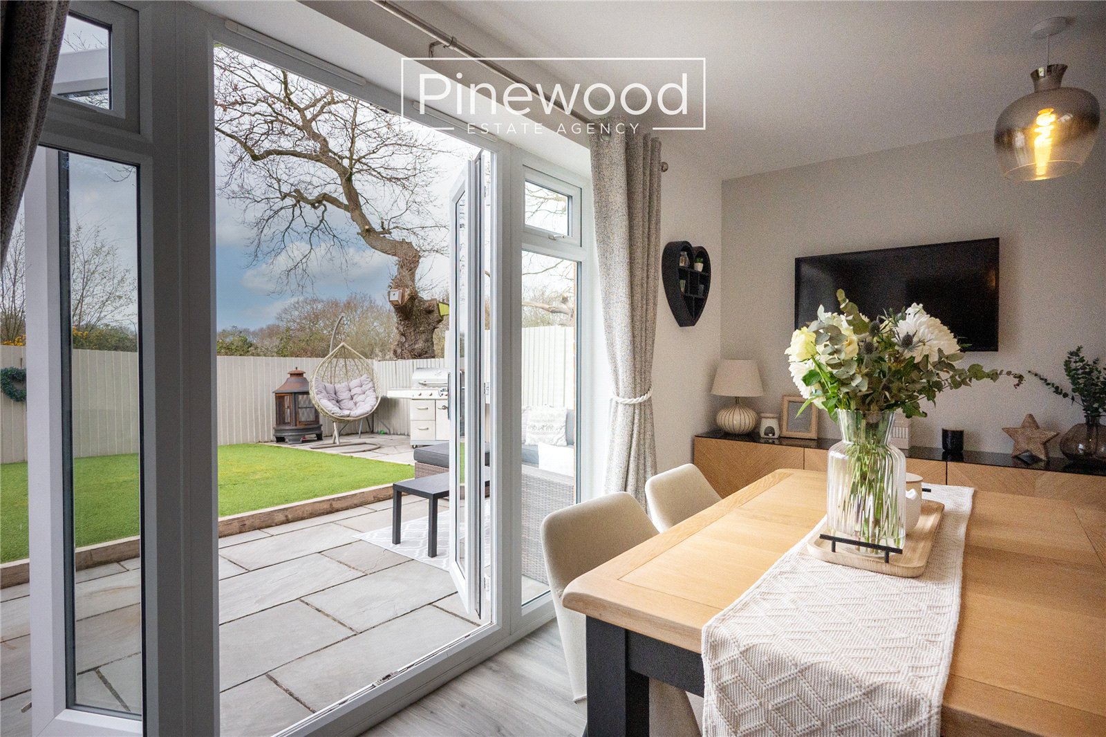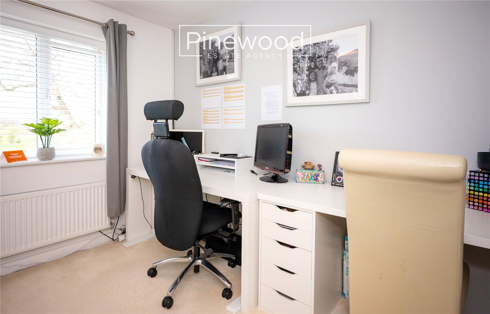 The private rear garden backs onto open fields, ensuring it is not overlooked and providing a peaceful and secluded outdoor space. The garden can be accessed via the French doors from the dining room or from the utility room. Your outdoor dining furniture will look fantastic on the patio – a great entertaining space for those summer BBQs. Young children can enjoy playing on the spacious lawn throughout the year.