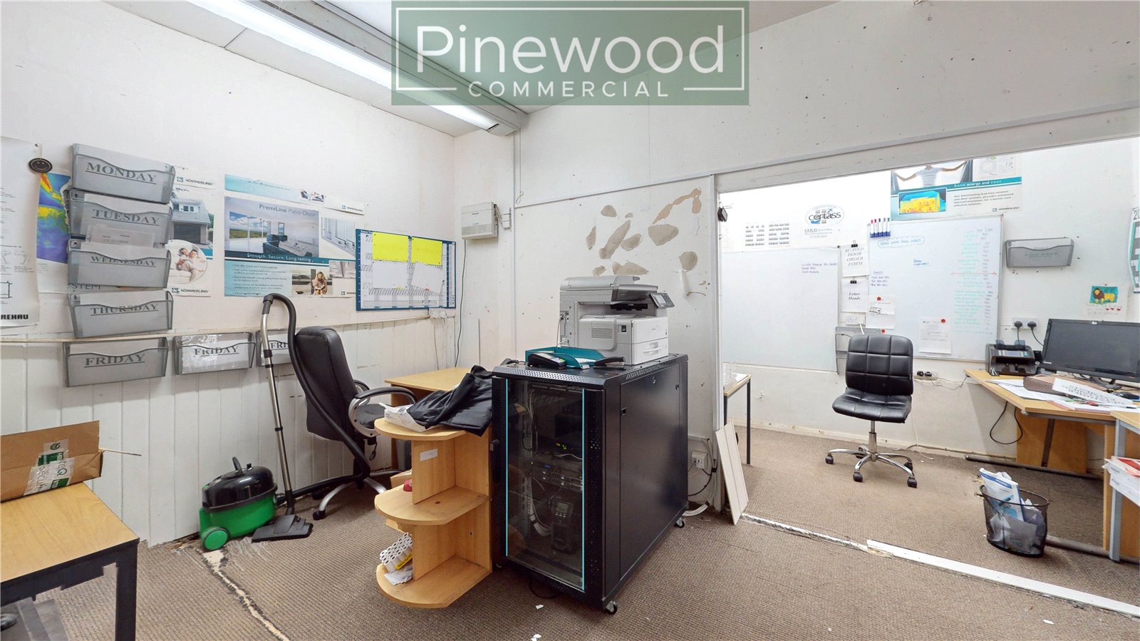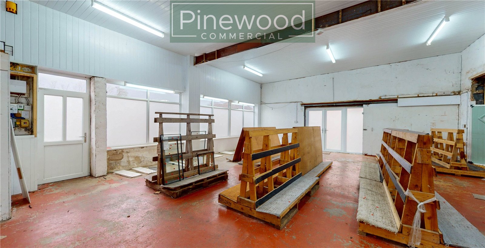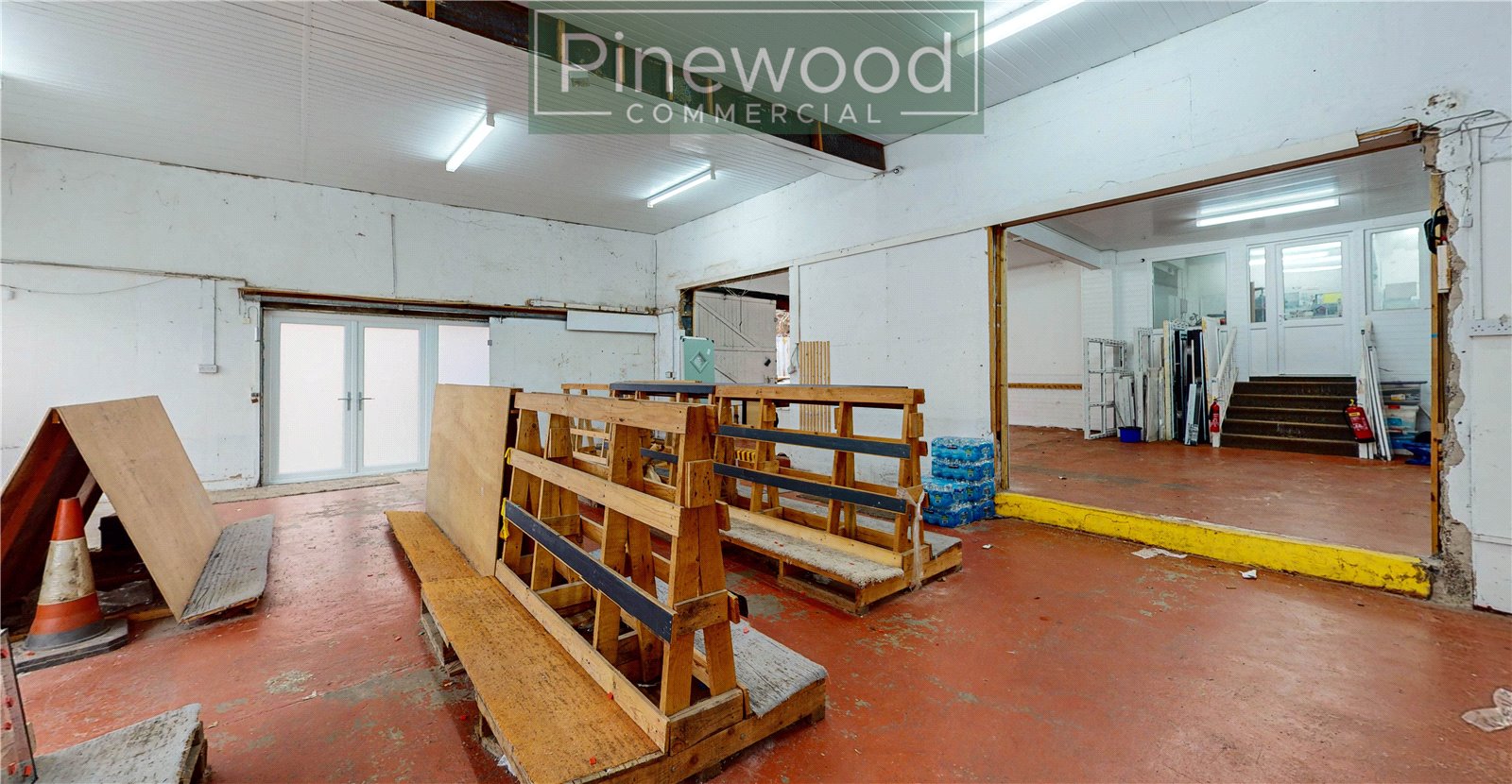 This unit offers two large workshops, a WC, an office and an abundance of external space. The external space can be accessed from the door in the office, or the French doors in the workshop. There is also vehicle access into the building via the external area.