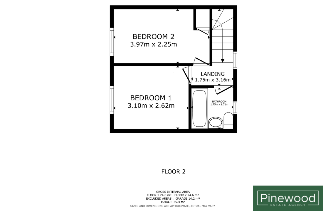 Take the carpeted stairs from the lounge to the first floor. The first floor comprises two double bedrooms and the family bathroom. Both double bedrooms are great sizes and overlook the front of the property. The modern bathroom suite comprises, WC, hand basin, and bath with electric shower above.