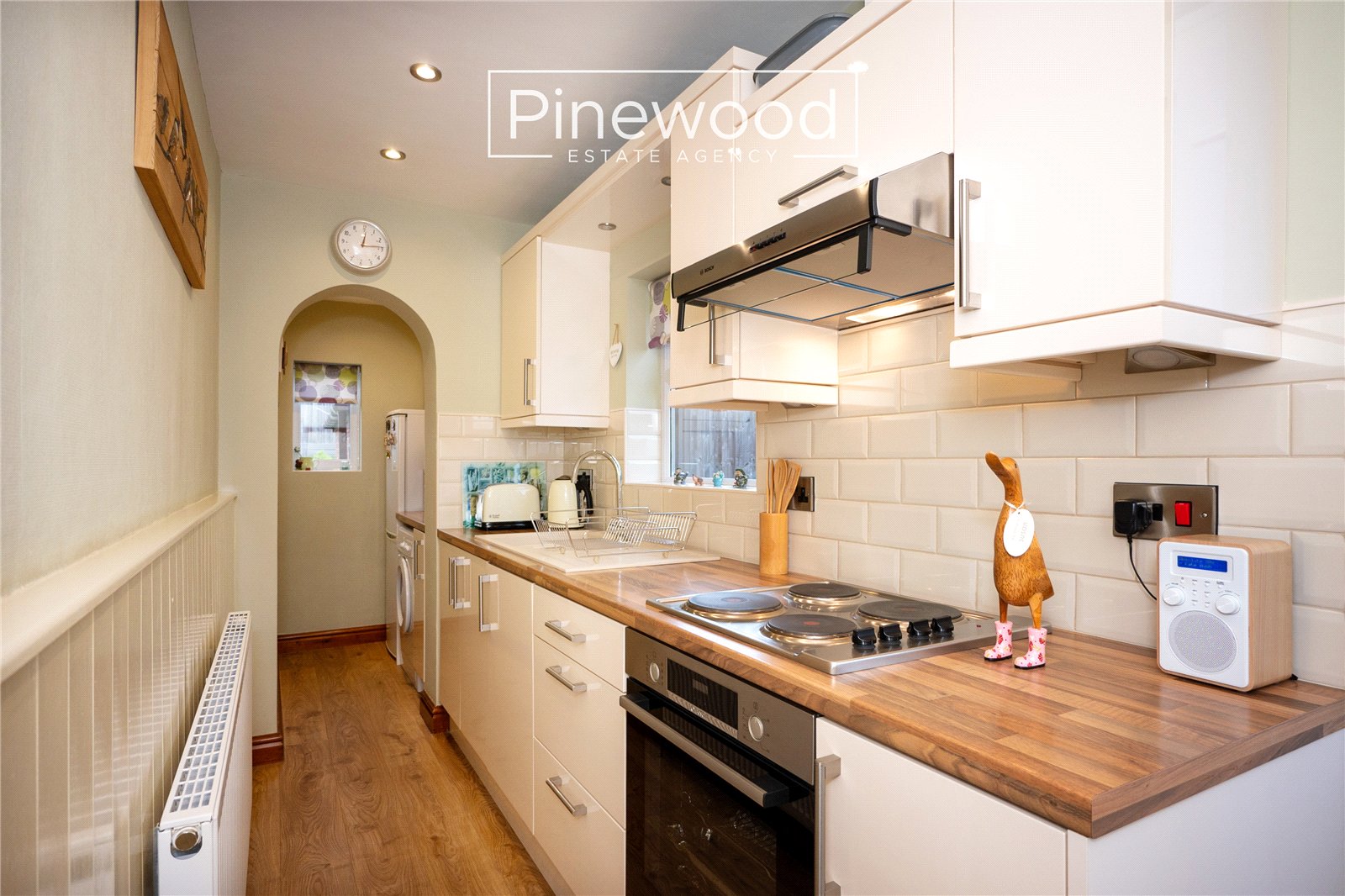 The ground floor of the family home comprises; spacious reception room currently used as a dining room with a large window overlooking the front lawn. The second reception room enjoys views of the rear garden and has ample space to be used as a lounge or dining room. The modern kitchen is fitted with white under counter and wall units with attractive wooden worktops, with plenty of space for your white goods. Integrated appliances include the electric hob, oven, and extractor fan above.