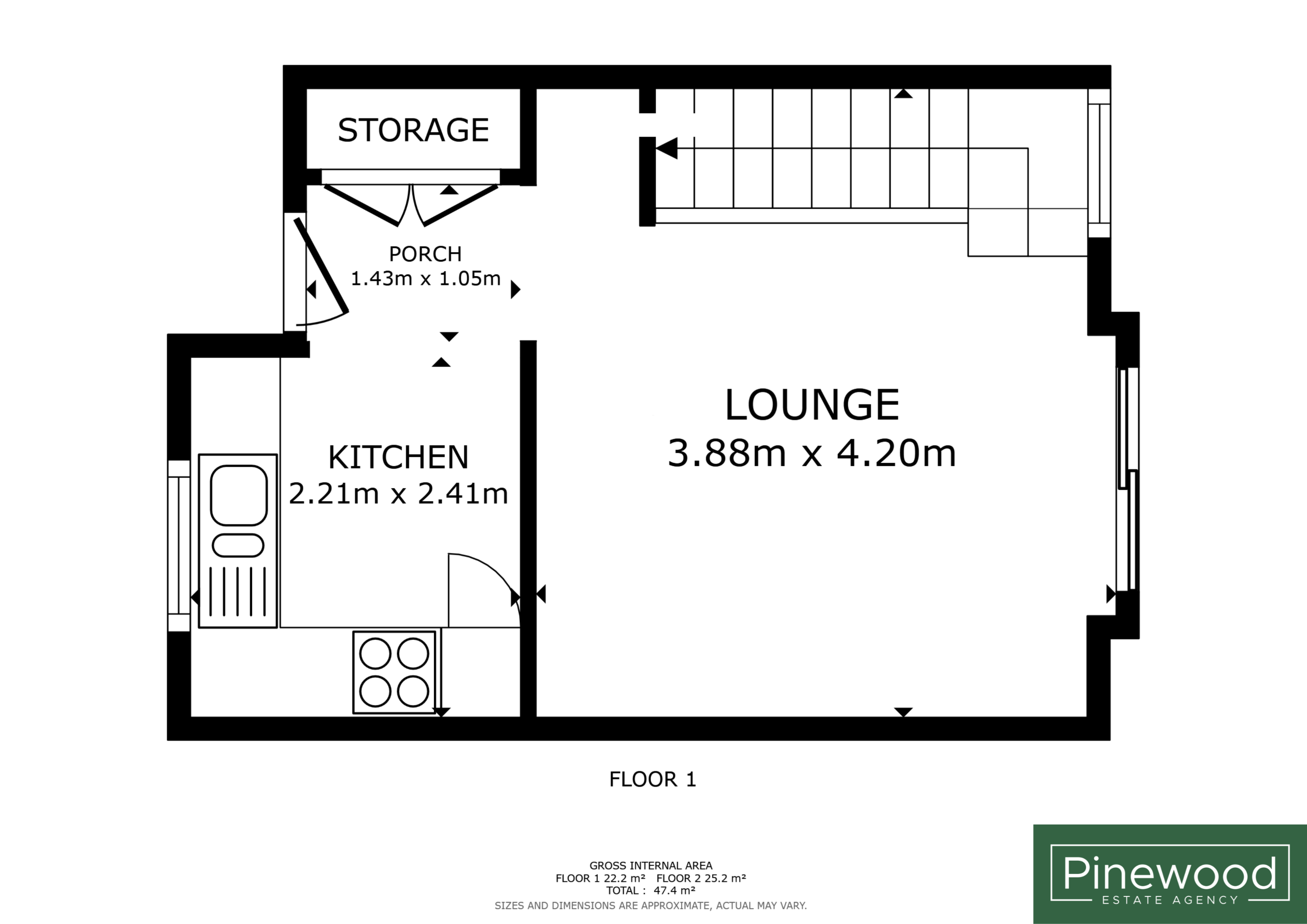Porch: 1.43m X 1.05m