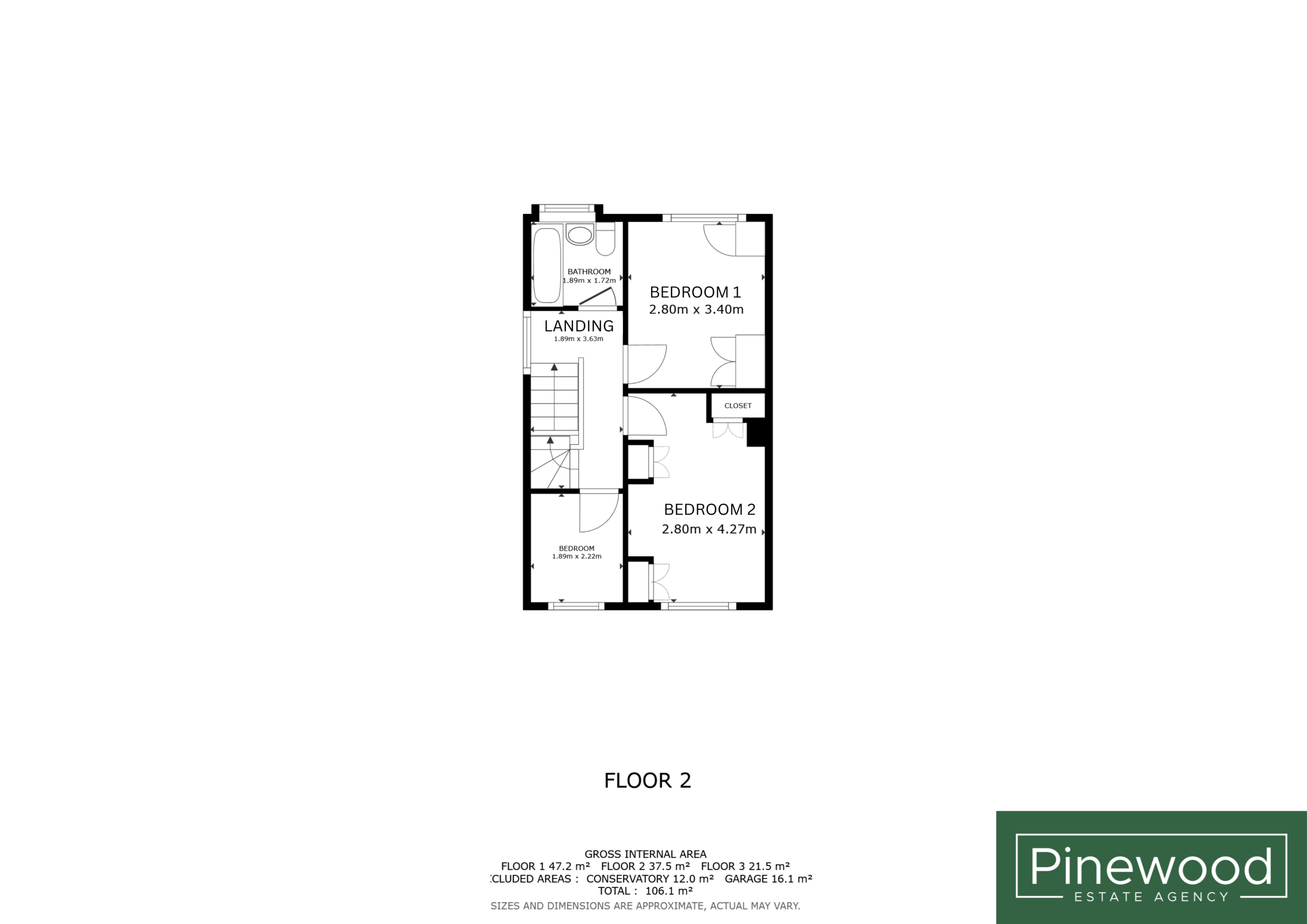 Landing: 1.89m X 3.63m