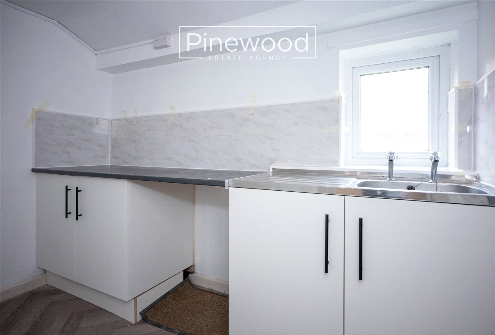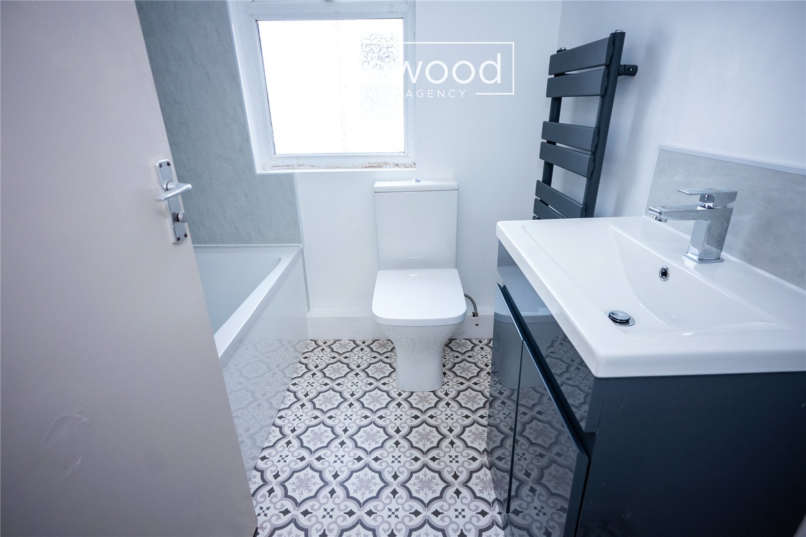 Upstairs, the property offers three generously sized double bedrooms, each featuring soft grey carpets that add warmth and comfort underfoot. The rooms are well-lit with natural light and finished with stylish beige doors, complemented by sleek black door handles and matching skirting boards, creating a cohesive and modern aesthetic throughout. Completing the upper floor is a stunning, modern family bathroom, beautifully finished with tiled flooring and neutral décor. The bathroom includes a WC, hand basin, and a full-sized bath with an overhead shower—ideal for both busy mornings and relaxing evenings.