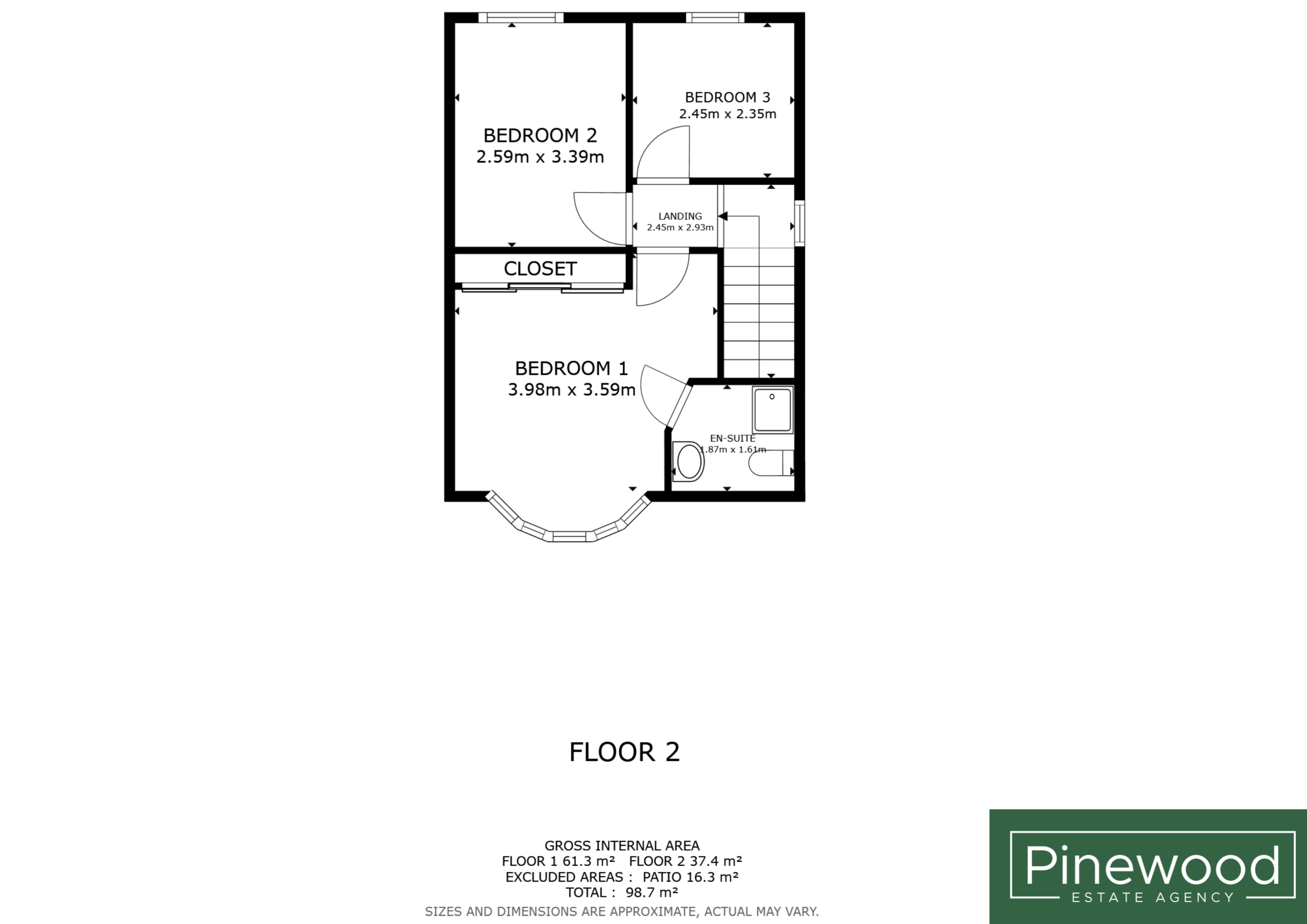 Landing: 2.45m X 2.93m