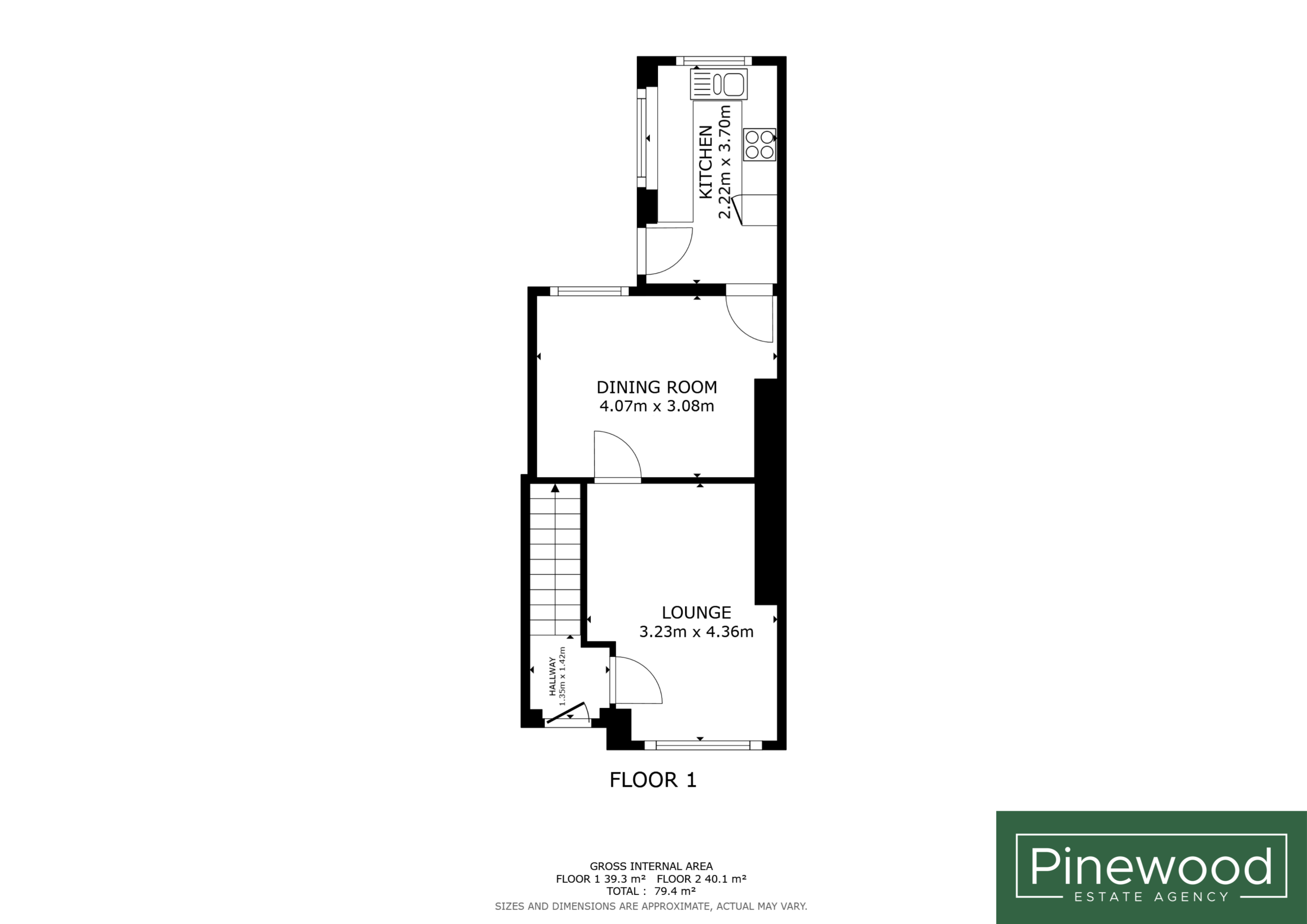 Hallway: 1.35m X 1.42m