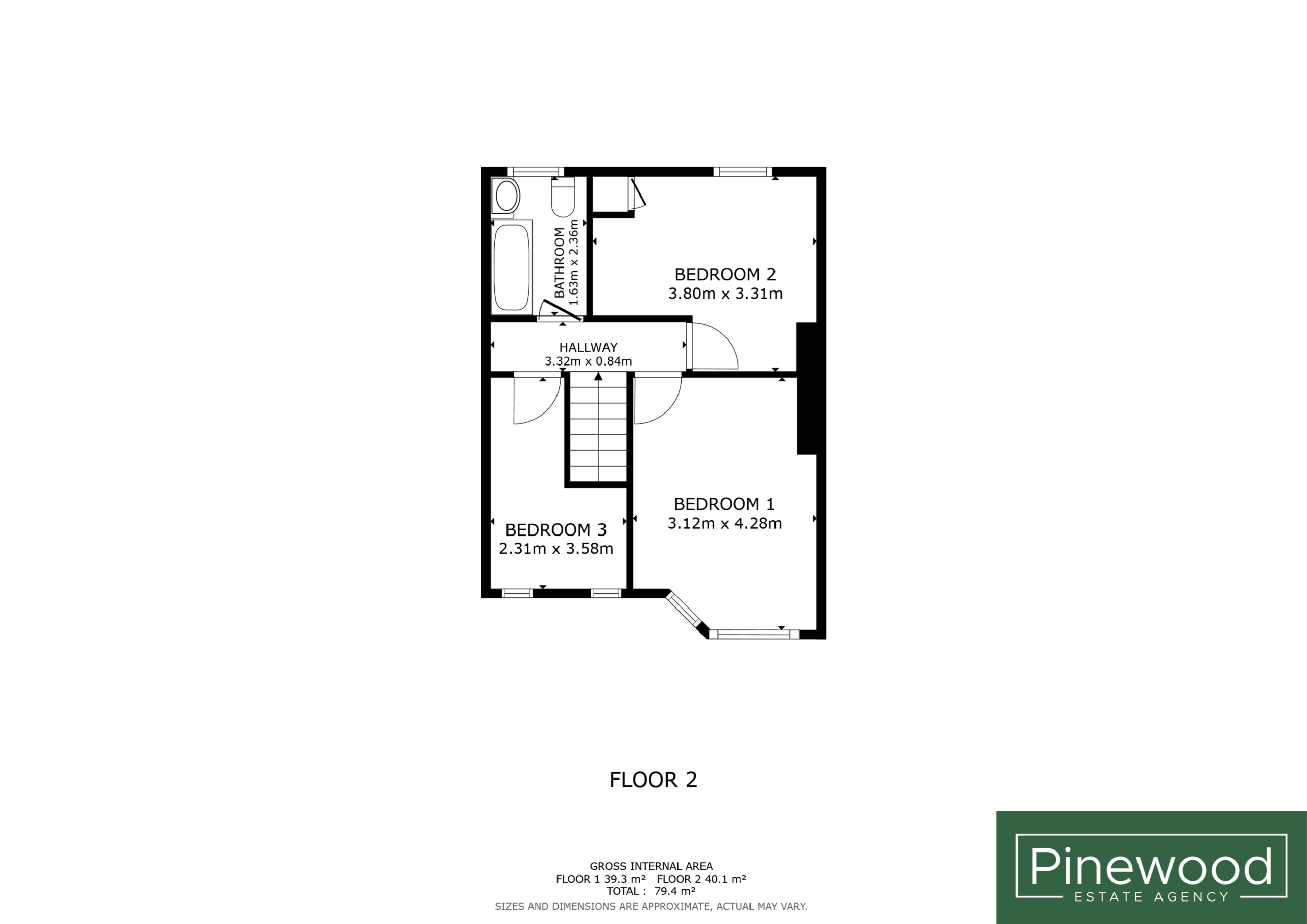 Bedroom: 3.12m X 4.28m